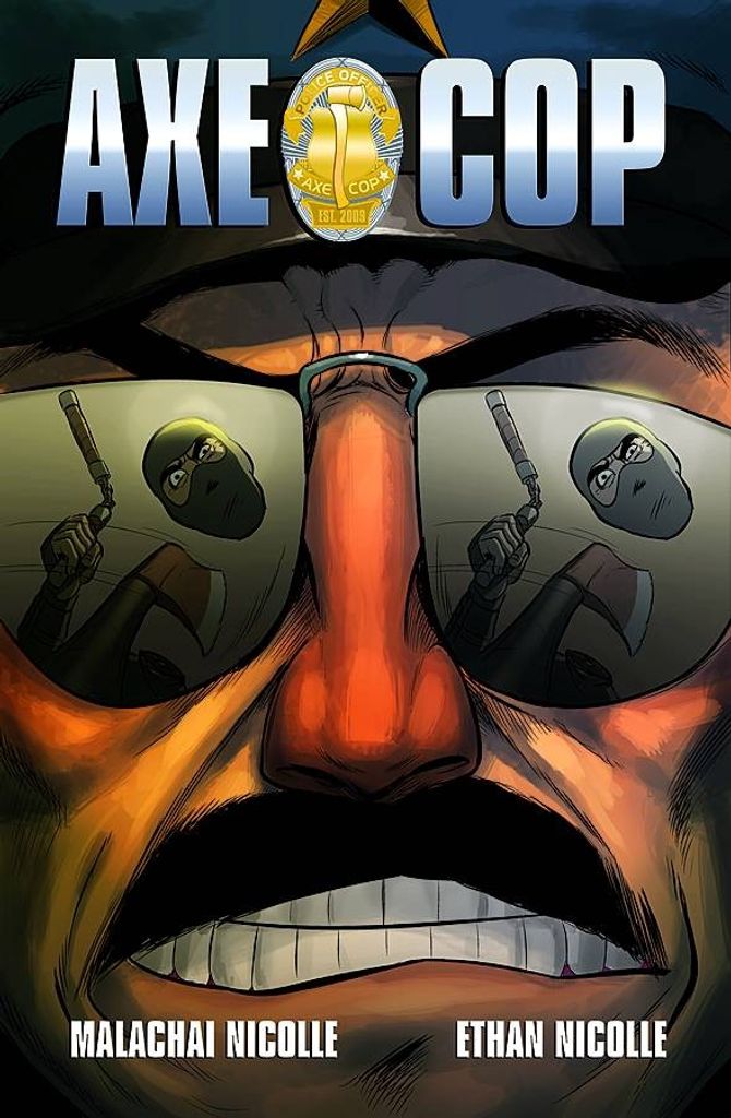 Axe Cop returns with a collection of new, exciting, and unpredictable stories! Written by the endlessly inventive six-year-old Malachai Nicolle and drawn by his Eisner Award-nominated thirty-year-old brother Ethan Nicolle, Axe Cop joins his comrades Uni-baby, Bat Warthog Man, and Dinosaur Soldier to fight bad guys and restore justice for kids- and grownups-everywhere!