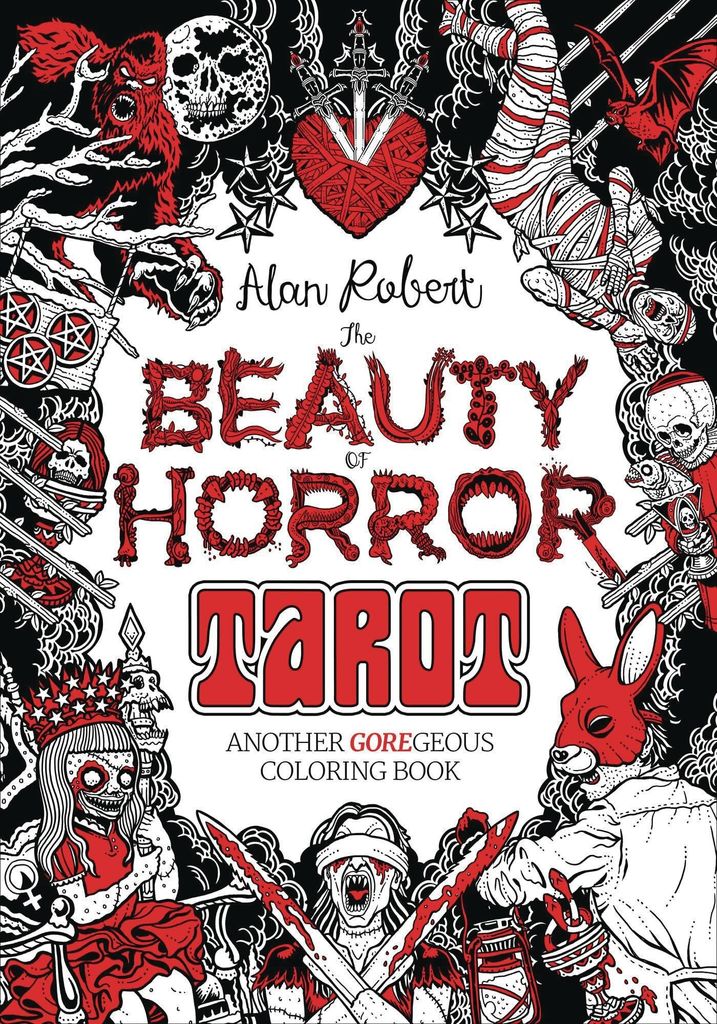 Let Ghouliana and her undead pals guide you through a truly sinister tarot experience filled with demons, werewolves, vampires, ancient spirits, and much, much more. This latest addition to the best-selling Beauty of Horror coloring book series just might be the world's creepiest take on the major and minor arcana you've ever seen… A must-have for horror fans! Included in this collection are 78 pieces of art by famed musician and illustrator Alan Robert, depicting each piece of the classic tarot in his own fiendish manner.