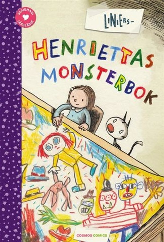 Henrietta har fått en ask nya färgpennor och bestämmer sig för att skriva en bok, en LÄSKIG bok. Serieskaparen LINIERS är tillbaka med en sprakande historia om en modig flicka, ett monster med tre huvuden och en författare som till och med blir rädd för sin egen bok. Humor, spänning och igenkänning i en lättläst seriebok för de yngre läsarna!