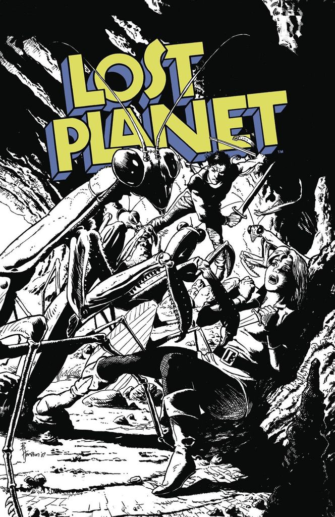 Somewhere in the dark jungles of the Andes mountains lies a Dimensional Bridge which leads to a violent, medieval world ruled by Magic of the Blackest sort! Fortune hunter Tyler Flynn enlists fellow ex-pats Ambrose Bierce and Amelia Earhart in a desperate attempt to break free from the diabolical orbit of... the Lost Planet. The long awaited fantasy opus/reboot Lost Planet from Author/Artist Bo Hampton is returning in a hardcover edition in glorious, living Black and White! Although The six-issue mini-series from 1984 was printed in color, Hampton's line art was done on craft-tint Duo Shade board-a long gone tonal process not seen since the heyday of E.C. Comics. The laboriously plotted, and lavishly illustrated, tale draws upon fantasy and classic pulp tropes for inspiration but remains completely unlike anything in comics, before or since.