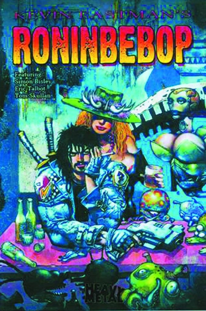 Roninbebop has it all - nasty flesh eating aliens and monsters in "Zombie War," body swapping serial killers in the lust drenched "Infectious," over-the-top superheroes fight the evil Mental Head for the sake of planet Earth in "Thump's Guts," convicted murders are transported into the middle of an off world war as their penance is "No Guts No Glory," tiny mutant animals fight for their life and turf in "The Very Angry Seven," and Kevin Eastman and Simon Bisley's comic character alter egos come to line in the mad cap adventures of "Biz and Buzz!"