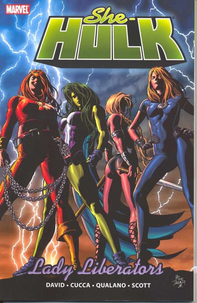 From the pages of HULK, the Lady Liberators burst on the scene! She-Hulk has been capturing the bad-guys as a bounty hunter...but is that enough for our conflicted hero? Time to kick things up a notch- and that means calling in Valkyrie, Thundra and the Invisible Woman to dispense some hard justice as the Lady Liberators! Collecting SHE-HULK #34-38.