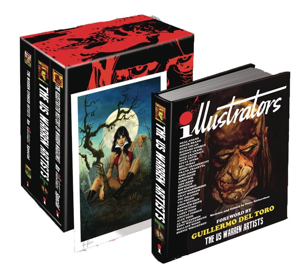 A set of all 3 Warren Hardcover volumes in a deluxe slipcase, plus a signed Vampirella print by Joe Jusko, the US's premier Vampirella artist. Limited to 120 sets on sale to the general public, this slipcases set includes The US Warren Artists, The Spanish Warren Artists (New Expanded edition), and The Illustrated History of Warren Magazines (Expanded Edition).