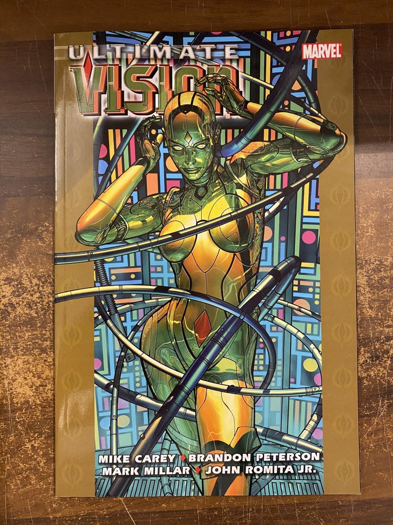 Picking up directly from the events of ULTIMATE EXTINCTION! The Earth was saved from the Ultimate threat: Gah Lak Tus. But scientist George Tarleton has captured a piece of that awesome entity and plans to reactivate it for his own evil purposes. The only hope for mankind against this mad scheme: the strange alien being called the Vision! Collecting ULTIMATE VISION #0-5.