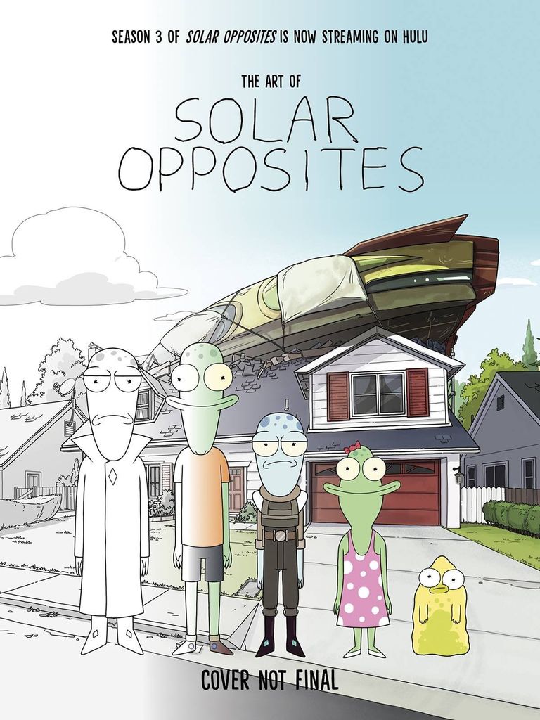From two of the #$%@s behind Rick and Morty comes the off-the-wall tale of a family of aliens trapped in middle America. This book will bring you all new behind the scenes art for the world and characters featured in the first two seasons of Solar Opposites! Featuring never before seen art of Korvo, Terry, Yumyulack, and Jesse, as well as the inhabitants of the Wall! Explore this behind the scenes look at the development and process of the hit series, detailing aspects you can find nowhere else! o Featuring concept work to completed renders of all characters, locations, and aspects of the show.