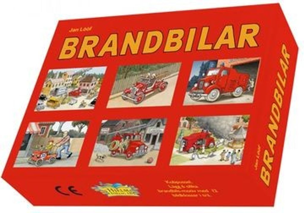 Nyutgåva där bilderna är trycka direkt på trät samt med en ny hård presentask. Kubpussel av Jan Lööf. Lägg 6 olika brandbils-motiv med 12 bildklossar i trä.