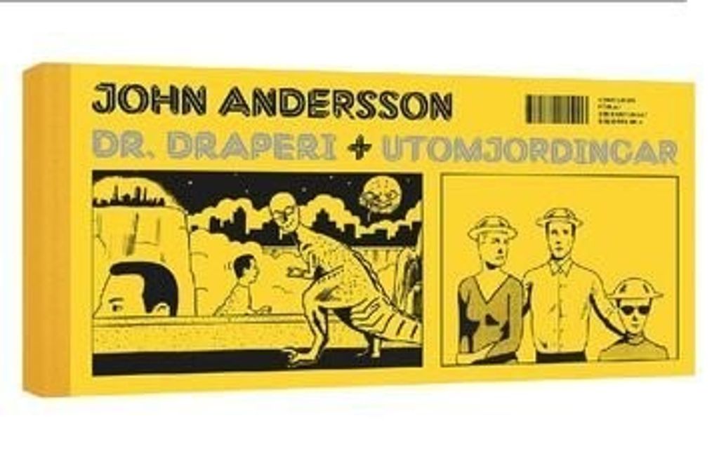 Välkommen till John Andersson värld! Volym 3 i Seriehistoriskt Bibliotek samlar Dr. Draperi + Utomjordningar, två stripserier som gick som gästerie i Dagens Nyheter 1997 respektive 2003.