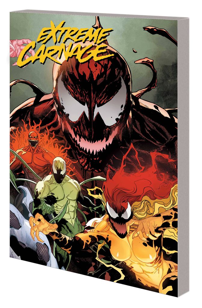An event that truly lives up to its name! Spider-Man and friends were pushed to the limits in MAXIMUM CARNAGE. The Marvel Universe barely survived ABSOLUTE CARNAGE. Now we're taking symbiote chaos to the Extreme! As the dust continues to settle after the symbiote-redefining KING IN BLACK saga, Eddie and Dylan Brock aren't the only ones adjusting to a new normal. The Life Foundation symbiotes - Scream, Phage, Riot, Lasher and Agony - are trying to reconcile the sometimes-noble intentions of their hosts with their own all-too-often bloodthirsty impulses! But another symbiote is facing a stunning reinvention as well - and that means Carnage! What will happen when the refreshed Carnage symbiote targets the rest one by one? Collecting EXTREME CARNAGE ALPHA, EXTREME CARNAGE: SCREAM, EXTREME CARNAGE: PHAGE, EXTREME CARNAGE: RIOT, EXTREME CARNAGE: LASHER, EXTREME CARNAGE: AGONY, EXTREME CARNAGE: TOXIN, and EXTREME CARNAGE OMEGA. Rated T+