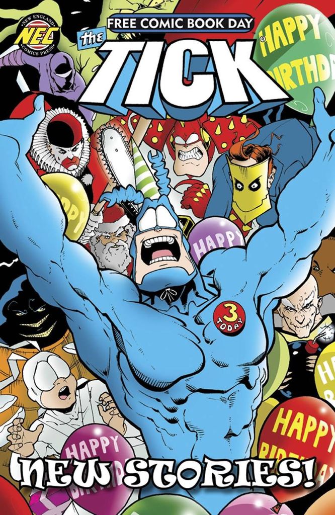 The Tick celebrates FCBD 2017 with 32 pages of full-color fun! In the all-new 15-page lead, 'Happy Birthday, Tick!', The Tick throws himself the ultimate super-party! But he invites both good guys and bad guys, figuring everyone can be pals in the interest of birthday celebrating! Party plans may go awry when The Terror attends along with his ninjas! Backup story: the presidential election saga, 'Civic Duty', previously only seen in a limited convention special. 29 pages of FCBD fun! This is going to be a BIG year for The Tick with the new Amazon TV show!