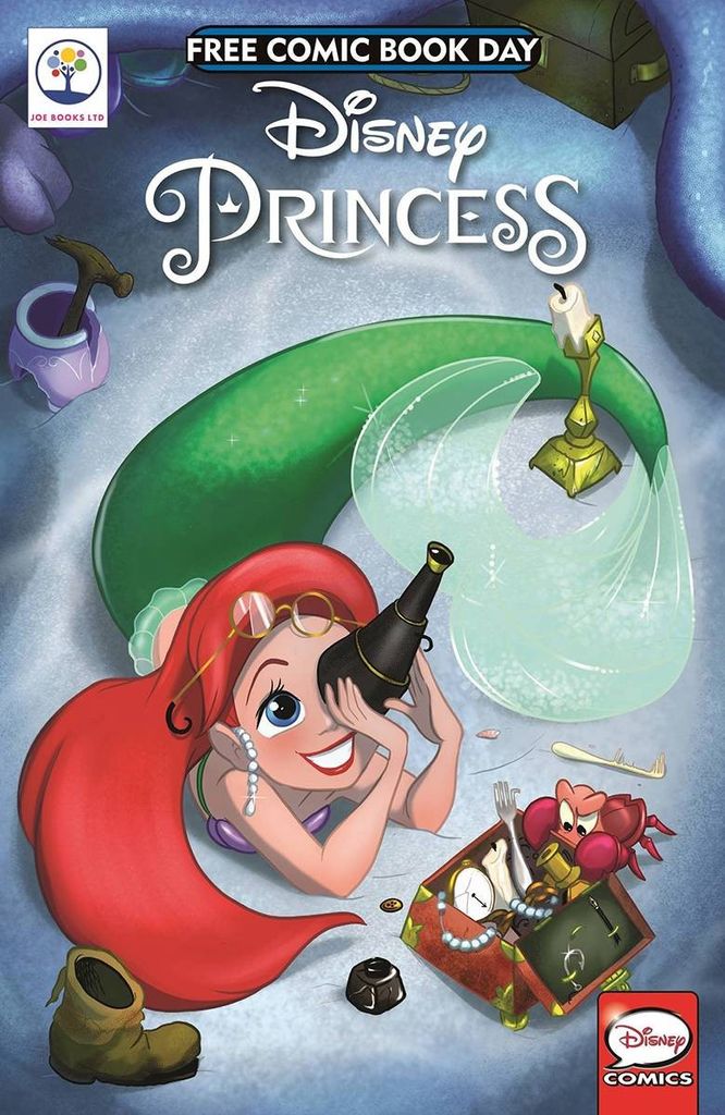 The FCBD edition of Joe Books's best-selling Disney Princess comic will put the spotlight on Ariel for the very first time! Collecting both new and fan-favorite strips, this exclusive comic book will contain giggles aplenty as everyone's favorite mermaid seeks out sunken treasure, tries to figure out human gadgets and gizmos, and embarks on new adventures with Flounder and Sebastian. Featuring FCBD exclusive cover artwork drawn by Disney Princess artist Amy Mebberson. All-Ages.