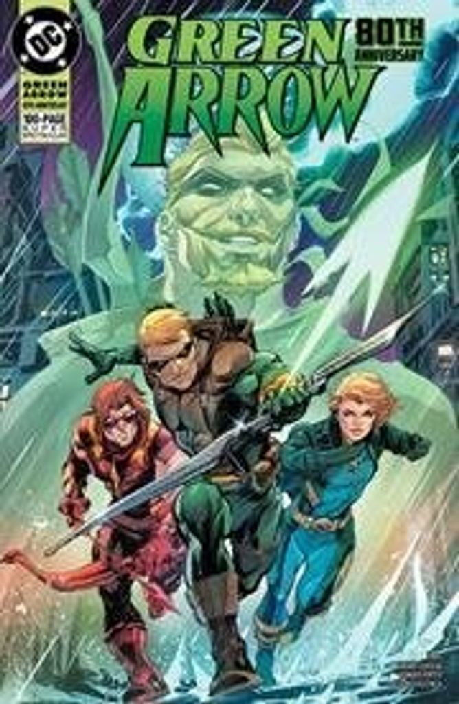 CELEBRATING THE EMERALD ARCHER’S 80TH ANNIVERSARY! For the last eight decades Green Arrow has been one of the premier (and loudest) characters in the DCU, always at the forefront of where the superhero genre is headed. This over-sized anniversary issue follows in those footsteps, as an all-star lineup of Green Arrow creators, alongside some of the gifted creators of the modern era who have been inpsired by Oliver Queen, unite to pay tribute to the Battling Bowman. See what the past, present and future have in store for Oliver Queen, Black Canary, Connor Hawke, Arsenal, Red Arrow, Speedy, and more in this epic special!