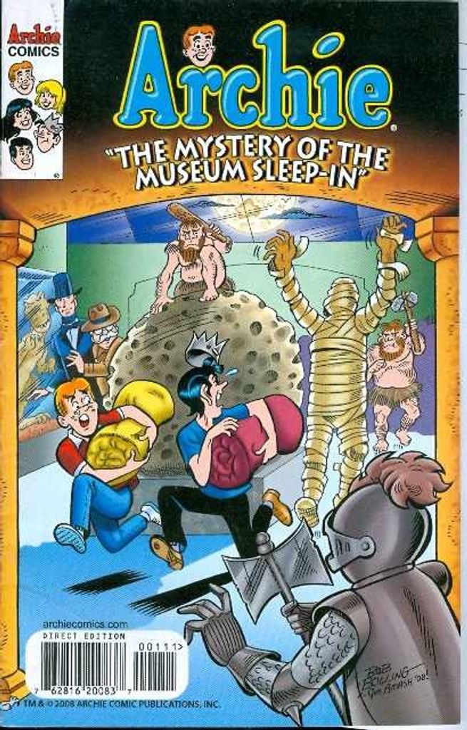 "The Mystery of the Museum Sleep-in": The museum is a scream for Archie and Jughead when, inspired by a favorite film, they decide to spend a night at the museum to experience maximum spookage. And experience it they do, as statues suddenly come towards them! Are these artifacts coming to life for real, or is somebody playing the ultimate Halloween "trick" on our unsuspecting teens? The answer will leave you scared silly! Makes the perfect "treat" for Halloween goody bags. SCRIPT: George Gladir. ART: Bob Bolling.