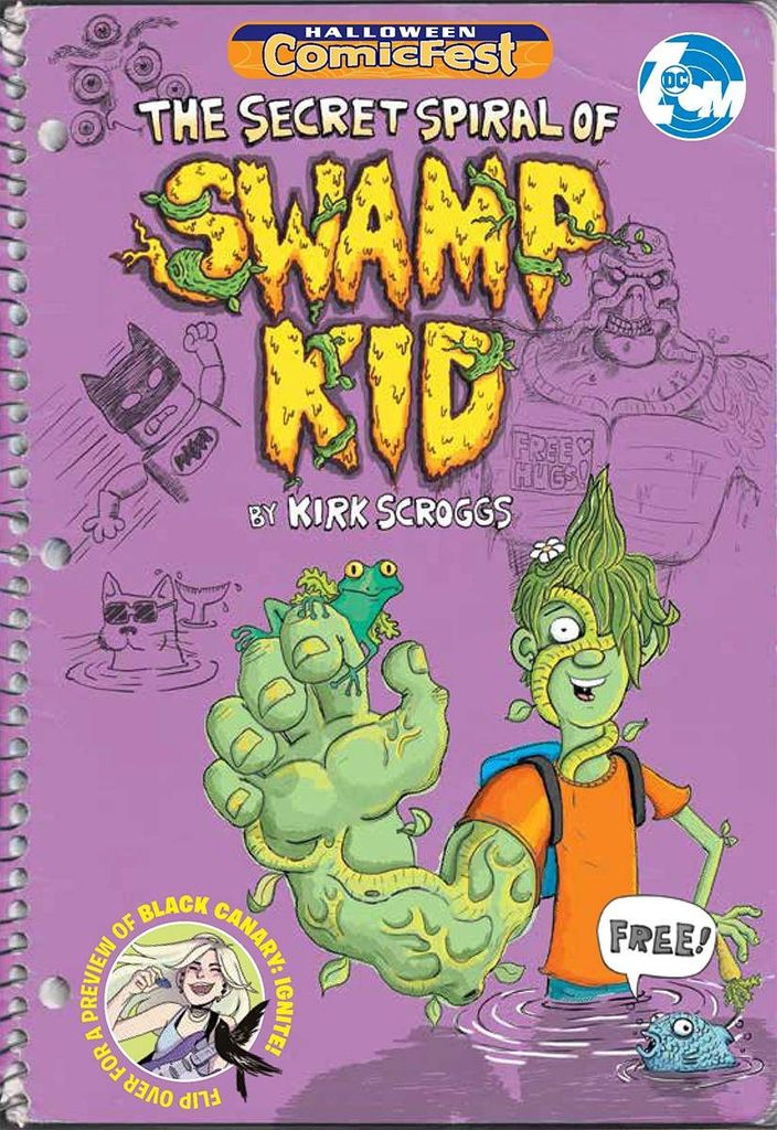 This exciting comic features excerpts from THE SECRET SPIRAL OF SWAMP KID by acclaimed writer / illustrator Kirk Scroggs and BLACK CANARY: IGNITE by Meg Cabot, the #1 New York Times bestselling author of The Princess Diaries and rising star artist Cara McGee. Russell is a middle schooler nicknamed 'Swamp Kid' by his classmates who has algae for hair, a tree trunk of a right arm, a frog for a best friend, and a carrot for a finger. Russell details, in both hilarious text and color illustrations, what it's like to be different, to be comfortable in his own skin (no matter how slimy), and to discover his true talents. In the second story, thirteen-year-old Dinah Lance knows exactly what she wants, who she is, and where she's going. First, she'll win the battle of the bands with her two best friends, then she'll join the Gotham City Junior Police Academy so she can solve crimes just like her dad. Who knows, her rock-star group of friends may even save the world, but first they'll need to agree on a band name. Don't miss your chance to sample these exciting titles from the DC Zoom line of graphic novels for middle grade readers. Rating; All-Ages