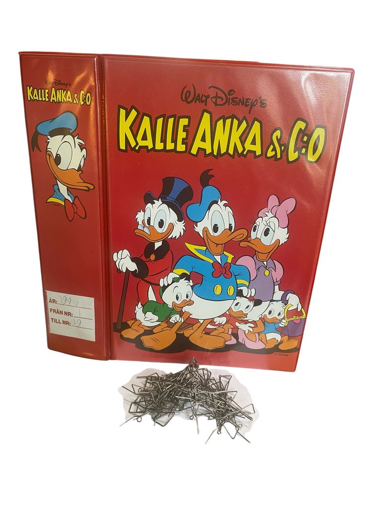 Kalle Anka Samlingspärm för 26 tidn. OBS! Begagnat exemplar i gott skick. Innehåller en pärm och 52 st clips så du kan hålla 26 Kalletidningar i pärmen.