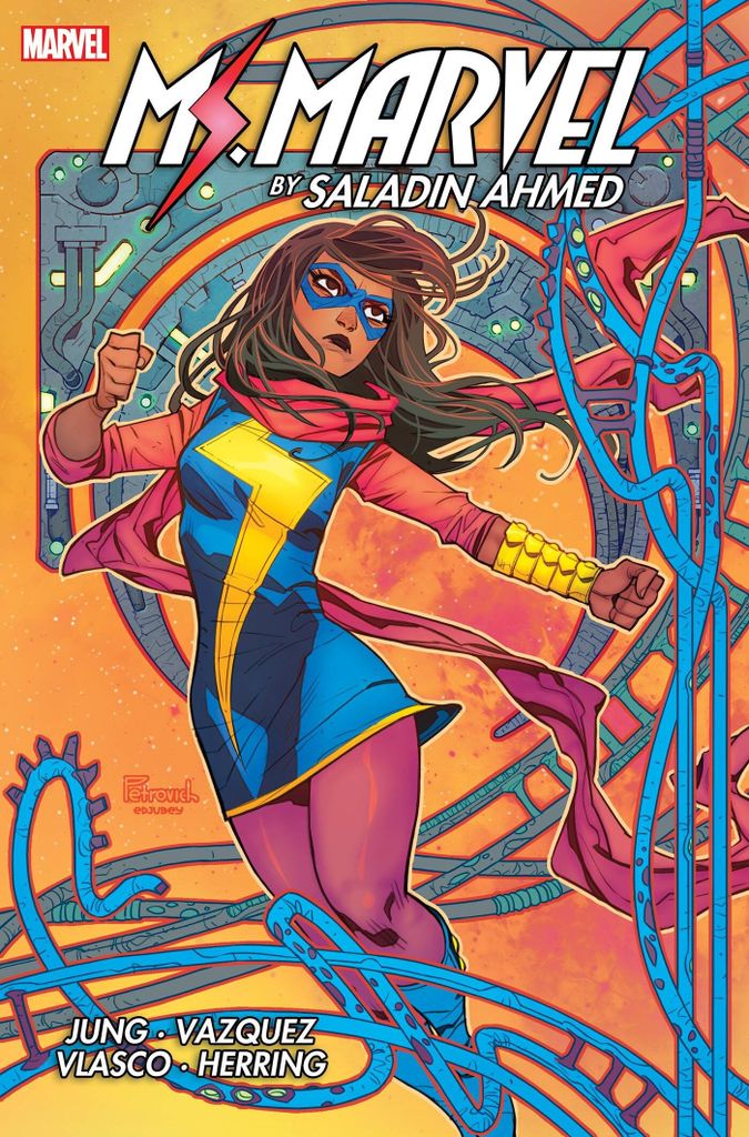 Ms. Marvel is back, and she's magnificent! But there's no such thing as business as usual in Jersey City. Aliens are wreaking havoc in Kamala's corner of the world, and they seem weirdly interested in Ms. Marvel and her family! Even if Kamala saves her hometown, will her life ever be the same? And what's all this business about a 'Chosen One'? Kamala gets a new look, but literal corporate zombies derail her road trip with Zoe and Nakia! And when disaster strikes Kamala's family, she and Bruno are drawn closer together than ever before. But will Kamala's duties as Ms. Marvel come between them? Meanwhile, a new hero muscles in on Jersey City. Is the town big enough for Ms. Marvel and Amulet? And what happens when teen heroes are completely outlawed - in Kamala's name?! Collecting MAGNIFICENT MS. MARVEL #1-18. Rated T+