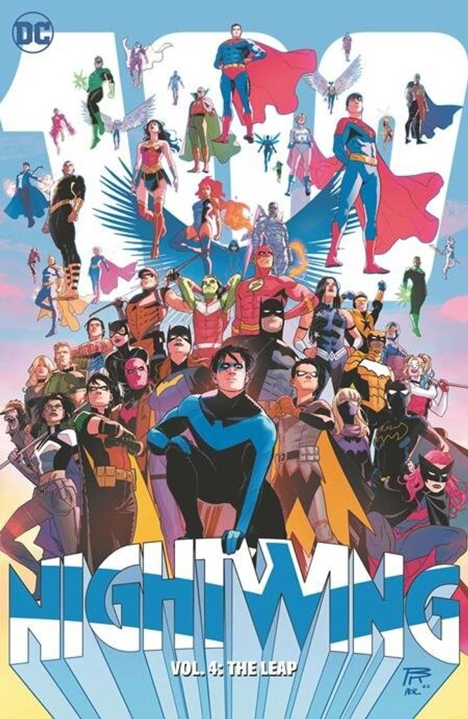 Written by Tom Taylor, Jay Kristoff, and C.S. Pacat Art by Bruno Redondo, Daniele Di Nicuolo, Eduardo Pansica, Inaki Miranda, and others Nightwing meets his biggest fan! Too bad it interrupts a romantic weekend and leads to a battle with a soul-sucking demon. And with Blockbuster off the board, Tony Zucco heads to Bludhaven in an attempt to claim the city as his own...but will Heartless claim victory first with his army of prison inmates? Then, find out who the villain is behind the platinum mask. Join Nightwing as he trains Jon Kent and follow Bitewing in her first year with her humans Nightwing and Batgirl and see how she takes a bite out of crime! Collects NIGHTWING #97-100 and NIGHTWING 2022 ANNUAL.