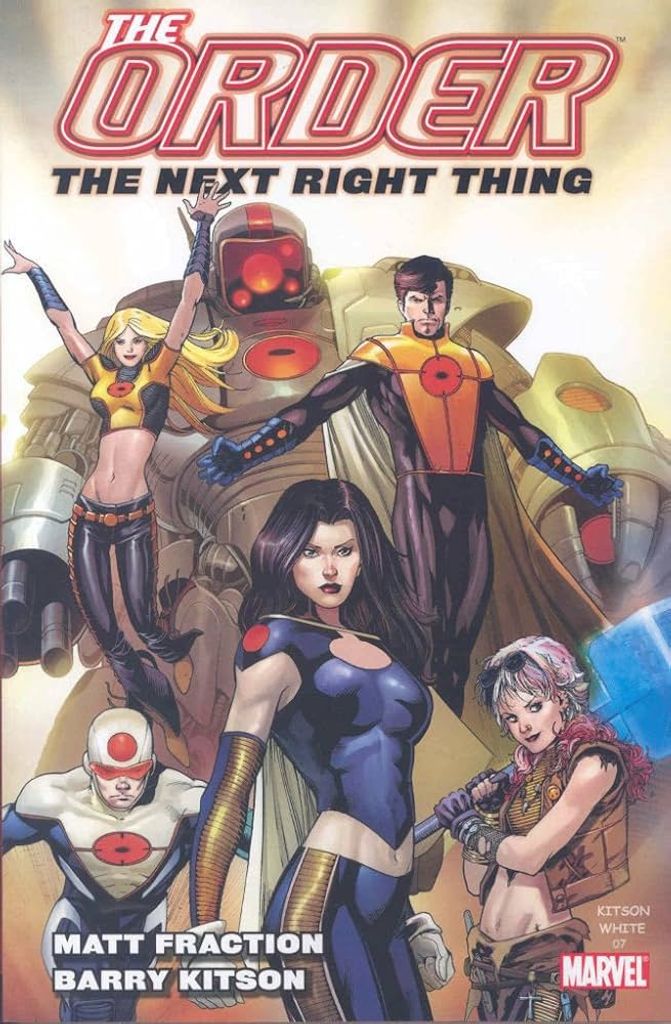 A team of long-dormant Soviet super-weapons is awake, angry and heading straight at the heart of Los Angeles ready to finish World War III! The front line of defense is a team that's been together since just before nine this morning! The queen of PR starts her spin! A dead body hides more than just a murder mystery! AND AND AND - a super-sex tape! What on Earth could justify the use of that many exclamation points? Surely, it could only be The Order, written by Matt Fraction (IMMORTAL IRON FIST, PUNISHER WAR JOURNAL) with art by the amazing Barry Kitson. Collecting THE ORDER #1-7.