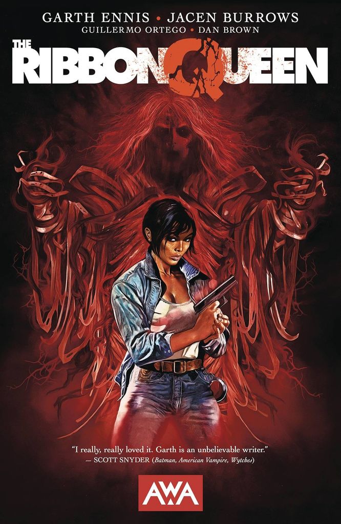 There is something ancient and terrible loose in the world of men. Something that hates them with burning passion, that bears a grudge born of ten thousand years. Something that wants its revenge. NYPD Detective Amy Sun has a problem: Three years ago, a young woman was rescued from a serial killer by a police tactical unit. Now she's dead, and Amy has a bad feeling that the SWAT team leader is responsible. As she investigates the existence of a corrupt cabal within her own precinct, Detective Sun soon discovers that there is something else on their trail - a force of vengeance older than the human race itself has awoken, invoked by the tormented murder victim in the weeks before she died, and is out for the blood of the guilty, who soon find themselves suffering a fate more gruesome than anything they could have dreamed of. The Ribbon Queen has come to New York City...and when she learns the truth, Amy is not at all certain that it should be stopped. Collects THE RIBBON QUEEN #1-8. Featured in Comics Beat's Best Horror Comics of 2023!