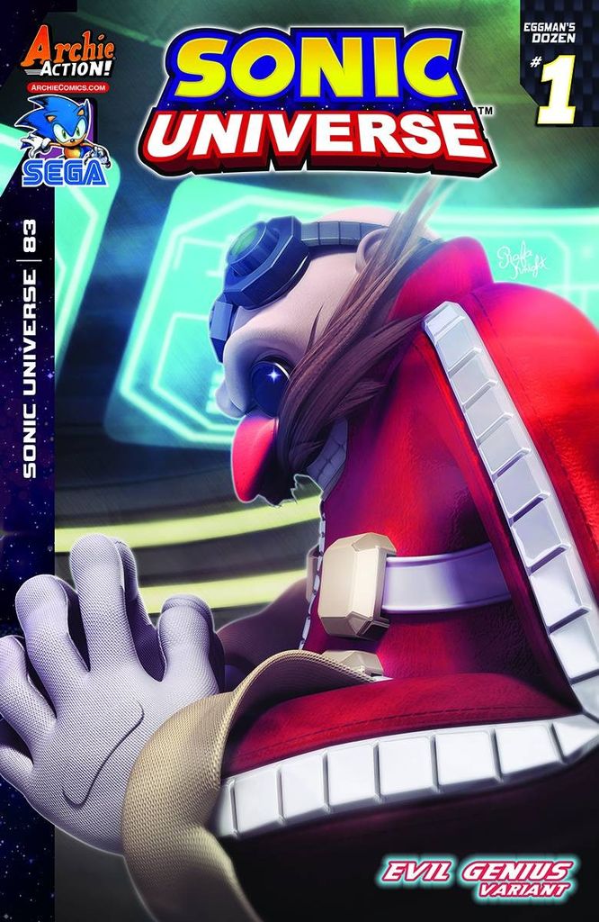 EGGMAN'S BASE is UNDER ATTACK in, 'Eggman's Dozen' Part One: Dr. Eggman's plans for controlling the shattered world were going perfectly-until now! The wizard warlords-the Naugus Twins-have taken over Eggman's base and Dr. Eggman's source of Dark Gaia energy! No mere robots will do for this mission-the doctor's going to need ALL his Egg Bosses! Featuring cover art by Mr. Sonic comics himself, Tracy Yardley, and an 'Evil Genius' variant by CG artist supreme, Rafa Knight!