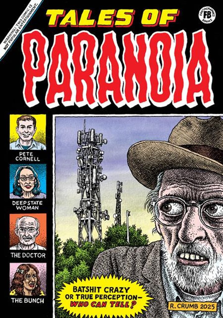THE FIRST R.CRUMBCOMIC BOOK IN 23 YEARS! The seminal cartoonist who single-handedly invented the alternative comics format of the one-person anthology in 1967 withZAPreturns at age 81, still raging at the world and himself, still drawing like a master, and still funny... mostly. In his latest comics excursion,Crumbdives down internet and newspaper rabbit-holes, and comes up asking questions. Why don't we know the real background of deep state careerists? And isCrumbhimself just as paranoid as everyone else tells him he is? Or is that just what THEY want you to think? Mixing memoir, essay, polemic, neurosis, and conspiracy across 12 short comics — including the final Dirty Laundry story, drawn byCrumb with a script written with Aline Kominsky-Crumb before her death in 2022 —Tales Of Paranoiashows there's still plenty of life in both the artist and the classic underground comics format.