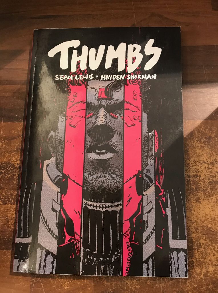 Adrian Camus, a rockstar tech designer, recruits children who excel at his games into his real-life war against the Power, a group of politicians and advocates aiming to take Camus' tech away from the people. Following a life-altering injury, eponymous recruit Thumbs finds himself torn between two sides of the muddy, escalating conflict. Heartfelt, action-packed, and forward-thinking, THUMBS is the newest hit from SEAN LEWIS and HAYDEN SHERMAN, the team that brought you THE FEW. Collects THUMBS #1-5